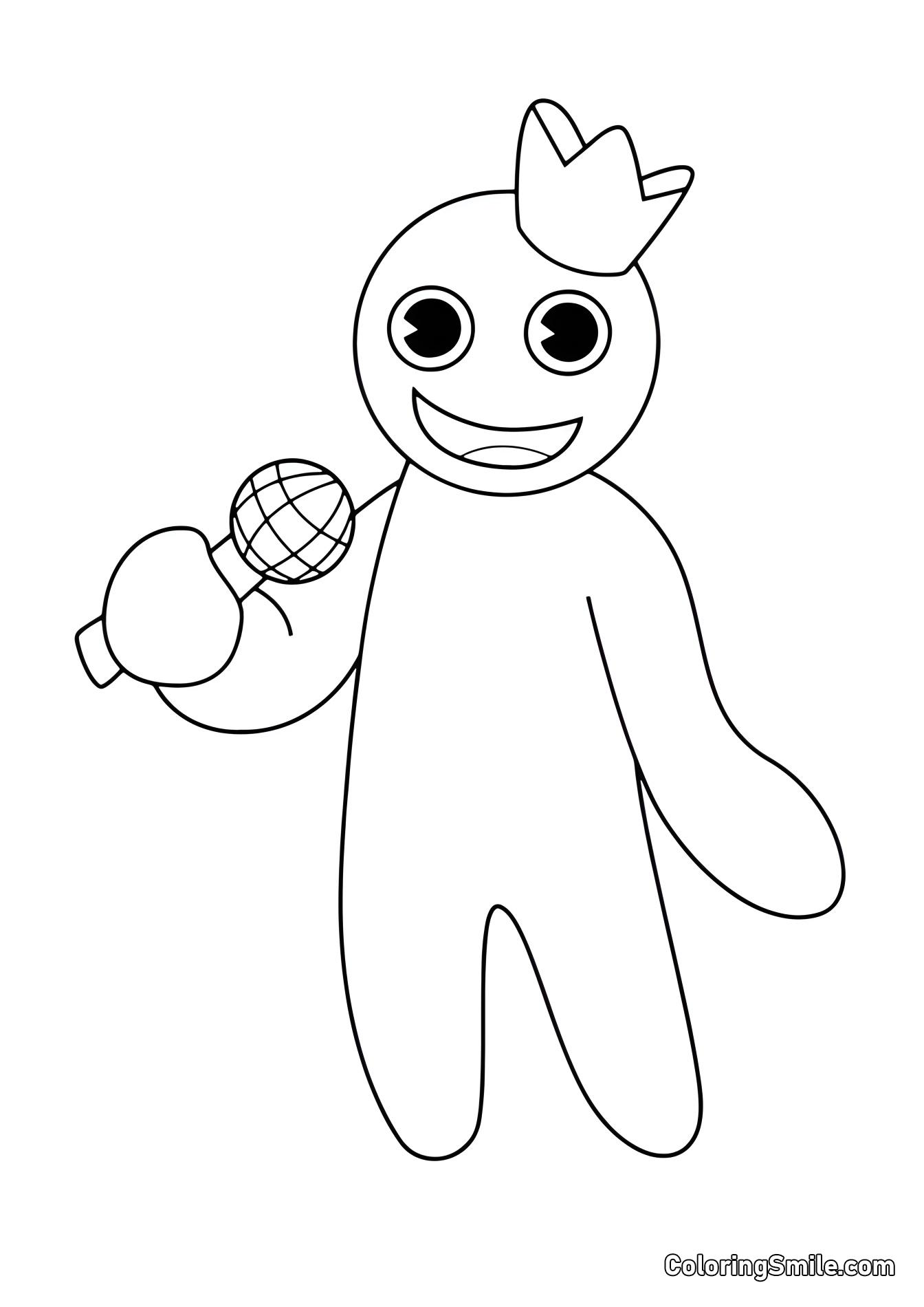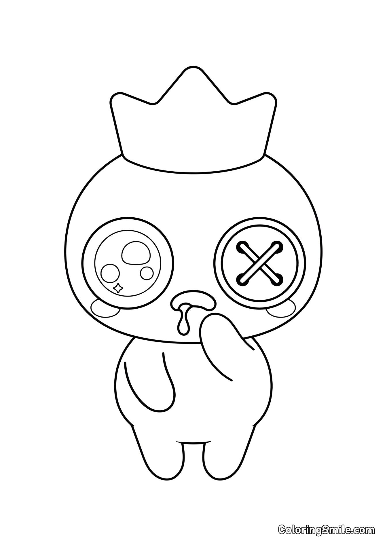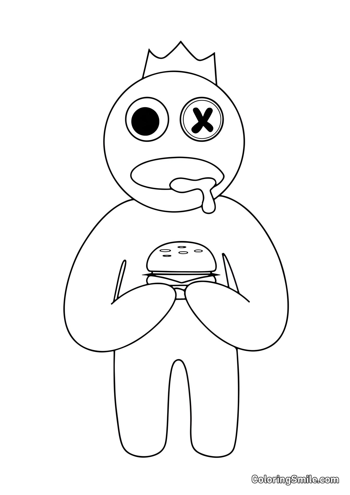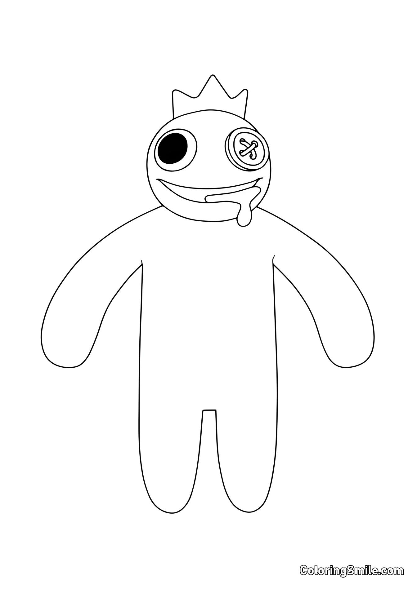 - Azul: Um grande monstro com um olho de botão e uma coroa amarela.
